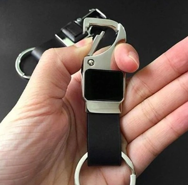 Keychain Metal Black Leather Metal Hoop Keychain with Opener